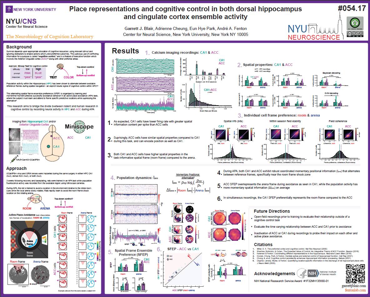 SfN 2023 poster - Place representations and cognitive control in both dorsal hippocampus and cingulate cortex ensemble activity