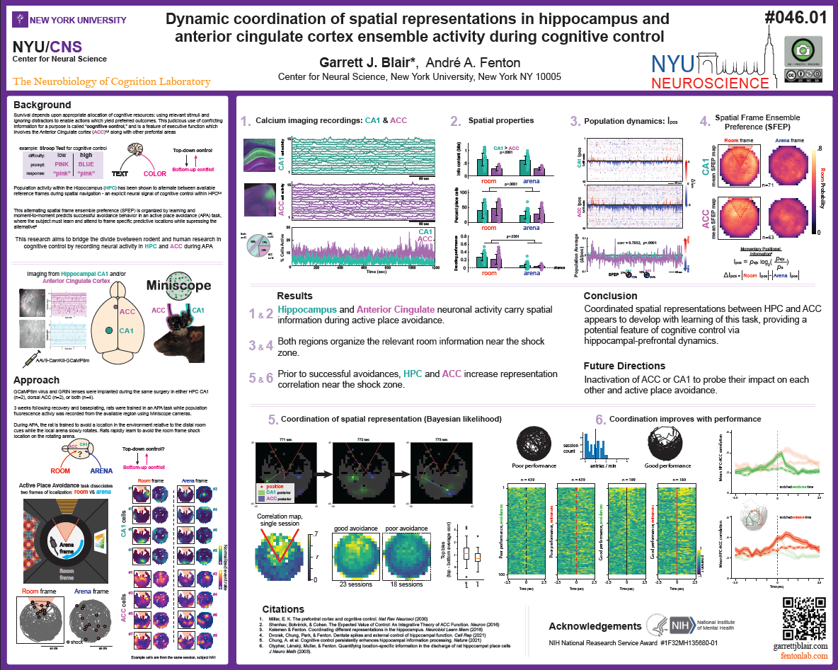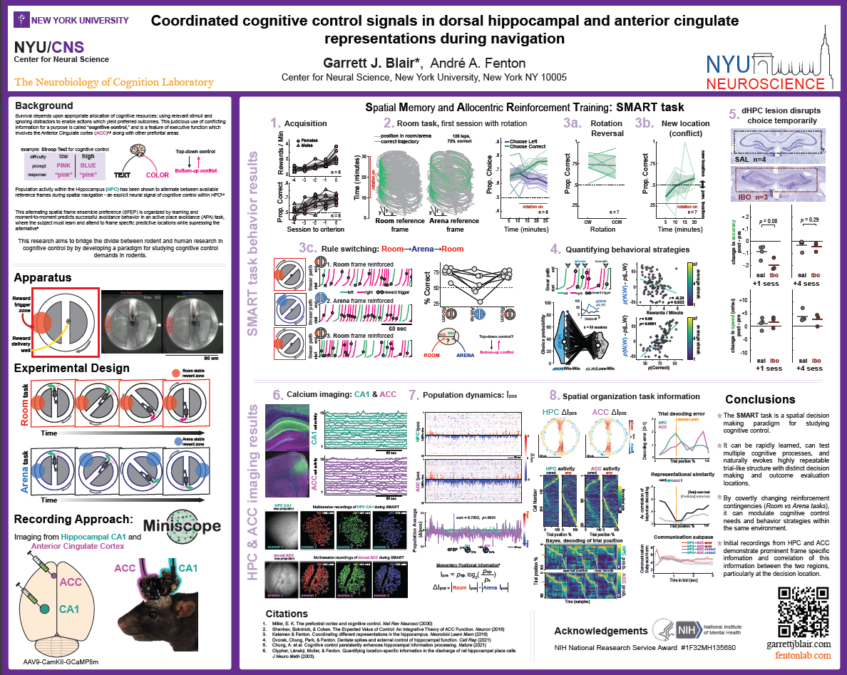 (SfN 2024) “Dynamic coordination of spatial representations in hippocampus and anterior cingulate cortex ensemble activity during cognitive control” Chicago, IL.
